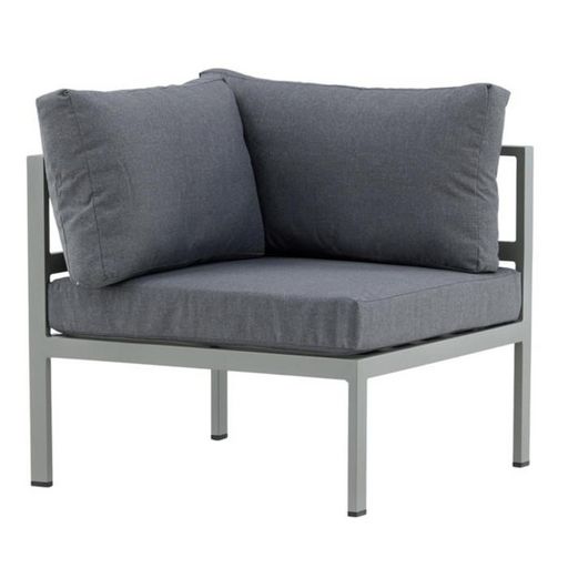 Informations Techniques : Dimensions : L. 74 x l. 74 x H. 65 cm Assise : L. 70 x l. 74 x H. 30 cm Accoudoirs : L. 4 x H. 65 cm Matières : Aluminium & Polyester Spécificités : Pratique & Confort Module canapé d'angle de jardin Cousins inclus Poids : 7,6 kg Couleur : Gris & Kaki