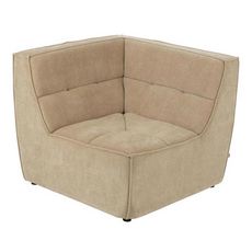 Informations Techniques : Dimensions : L. 98 x l. 98 x H. 83 cm Assise : H. 42 cm Matières : Bois (Peuplier), Tissu & Mousse Spécificités : Confortable & Tendance Module de canapé d'angle 1 place Design matelassé Poids max supporté : 115 kg Poids : 30 kg Couleur : Beige Foncé