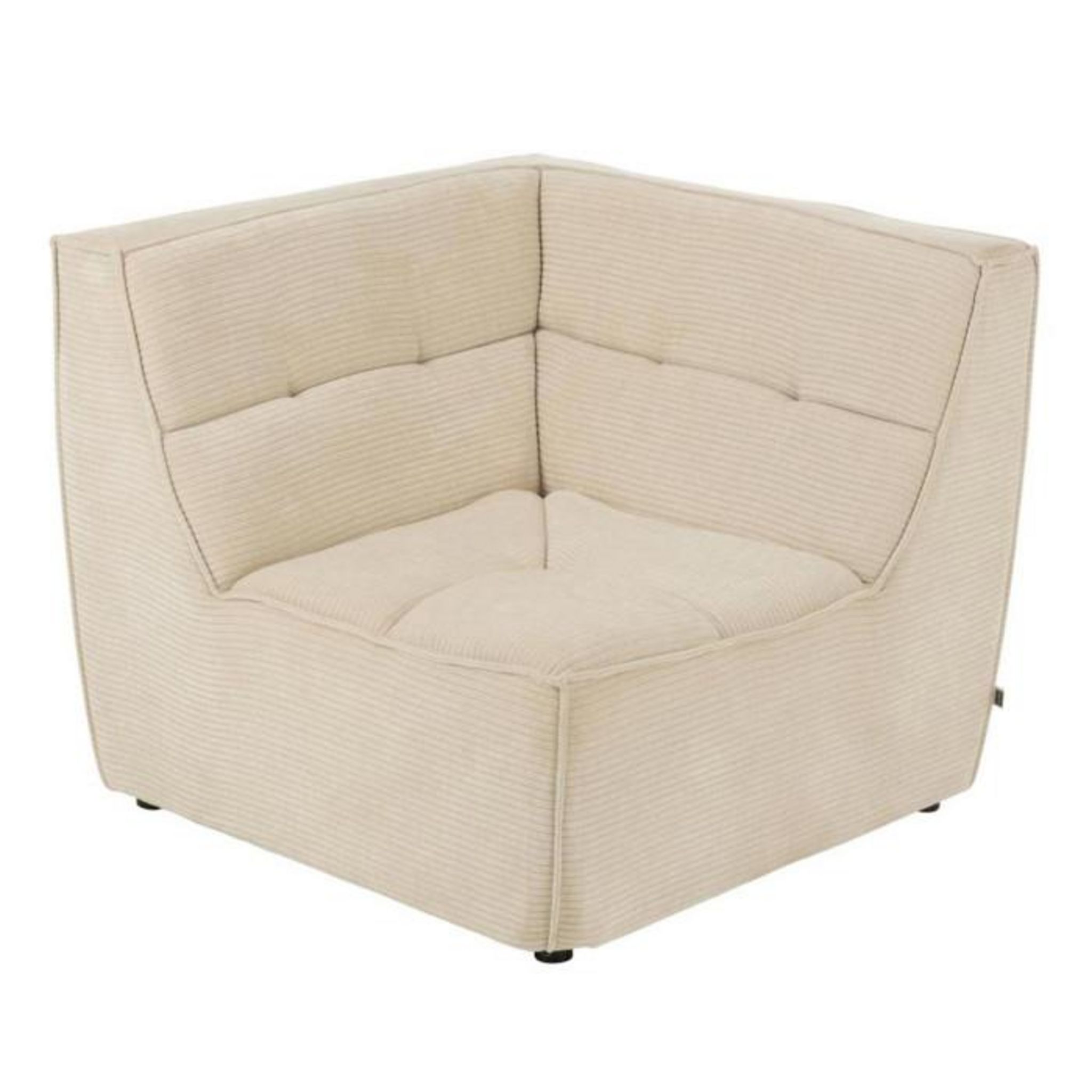 Informations Techniques : Dimensions : L. 98 x l. 98 x H. 83 cm Assise : H. 42 cm Matières : Bois (Peuplier), Tissu & Mousse Spécificités : Confortable & Tendance Module de canapé d'angle 1 place Design matelassé Poids max supporté : 115 kg Poids : 30 kg Couleur : Beige