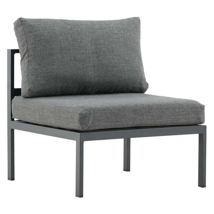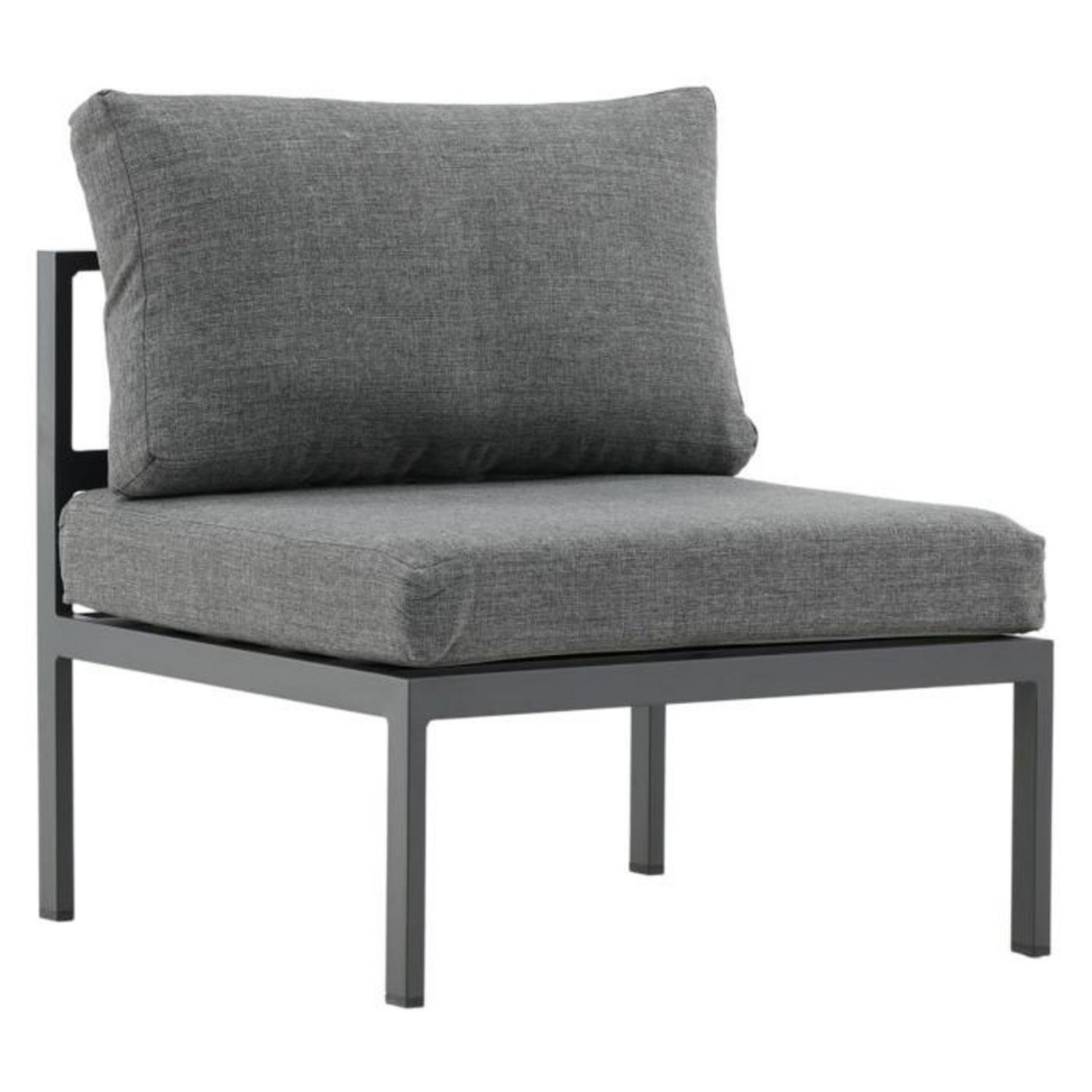 Informations Techniques : Dimensions : L. 70 x l. 74 x H. 65 cm Matières : Aluminium & Polyester Spécificités : Confortable & Pratique Module canapé de jardin Coussins inclus Poids max supporté : 150 kg Poids : 6,6 kg Couleur : Gris & Noir