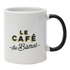 Informations Techniques : Dimensions : L. 12 x l. 8 x H. 9,5 cm Matière : 100% Grès Spécificités : Pratique & Utile Mug avec anse Inscription le café du bistrot Compatibilités : Lave-vaisselle et micro-ondes Capacité : 30 cl Poids : 0,3 kg Couleur : Blanc