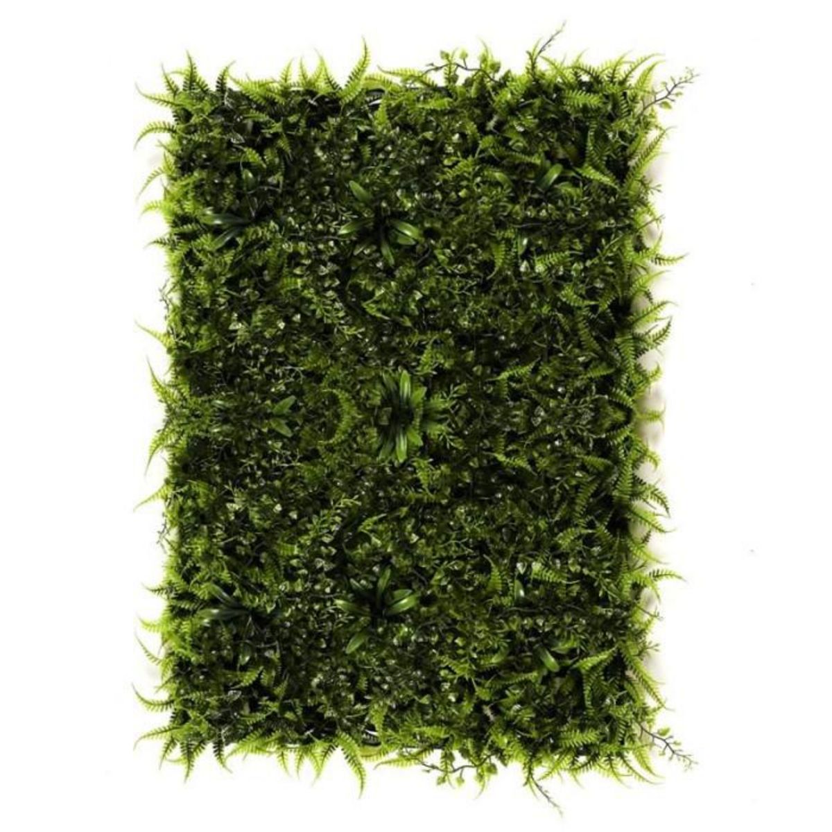 Informations Techniques : Dimensions : L. 60 x l. 40 x H. 10 cm Matière : Polyéthylène Spécificités : Pratique & Utile Mur Végétal Artificiel Forme Rectangulaire Fixation Murale Poids : 0,395 kg Couleur : Vert