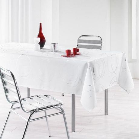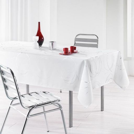 Informations Techniques : Dimensions : L. 240 x l. 150 cm Matière : Polyester Spécificités : Convient pour une table rectangulaire Traitement Antitache Entretien facile Pratique et Déco Poids : 0,600 kg Couleur : Blanc & Argent