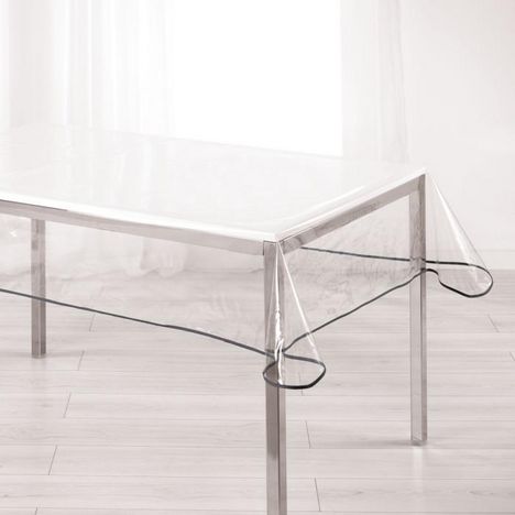 Informations Techniques : Dimensions : L. 240 x l. 140 cm Matières : PVC & Polyester Spécificités : Qualité 15/100ème Convient pour une table rectangulaire Biais gris sur le bord de la nappe Facile d'entretien Protection de table transparente Poids : 1,15 kg Couleur : Transparent & Gris