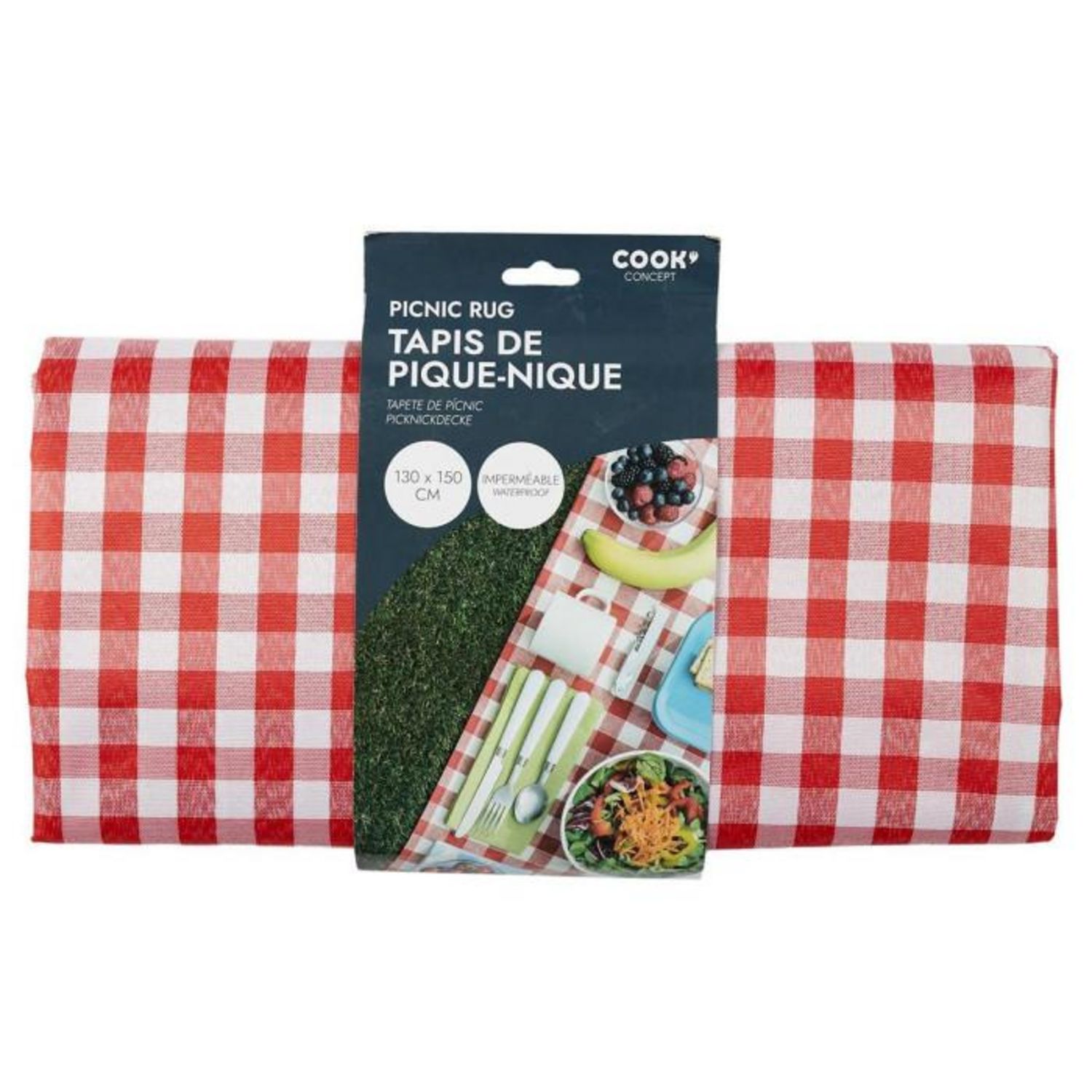 Informations Techniques : Dimensions : L. 150 x l. 130 cm Matière : Polyester Spécificités : Pratique & Utile Nappe de Pique-Nique Imperméable Motif Vichy Couleur : Rouge & Blanc