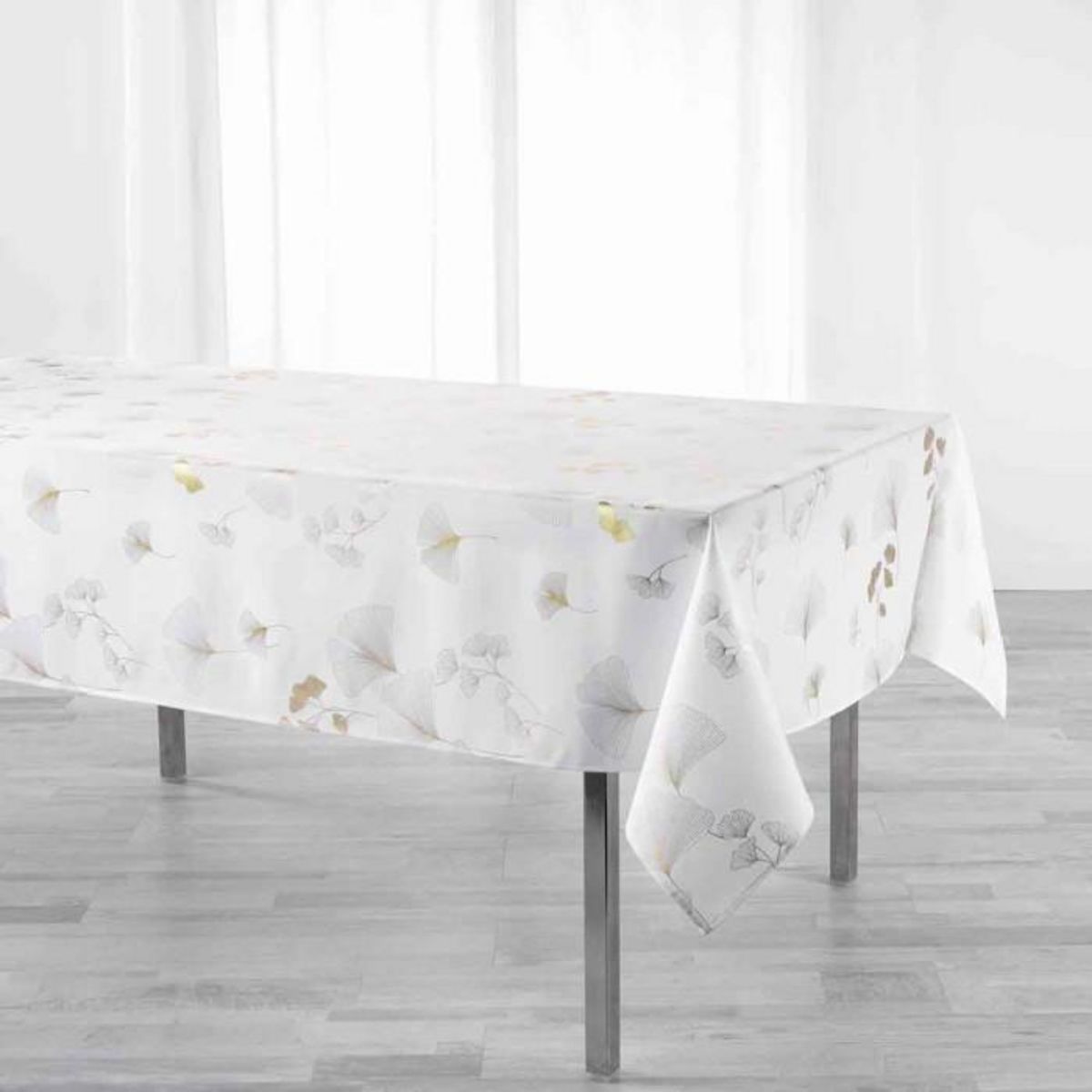Informations Techniques : Dimensions : L. 240 x l. 150 cm Produit Packagé : L. 23 x l. 2 x H. 46 cm Matière : 100% Polyester Spécificités : Tendance & Original Nappe Déco Forme Rectangulaire Imprimé Métallisé Finition Ourlet Poids : 0,63 kg Couleur : Blanc & Or