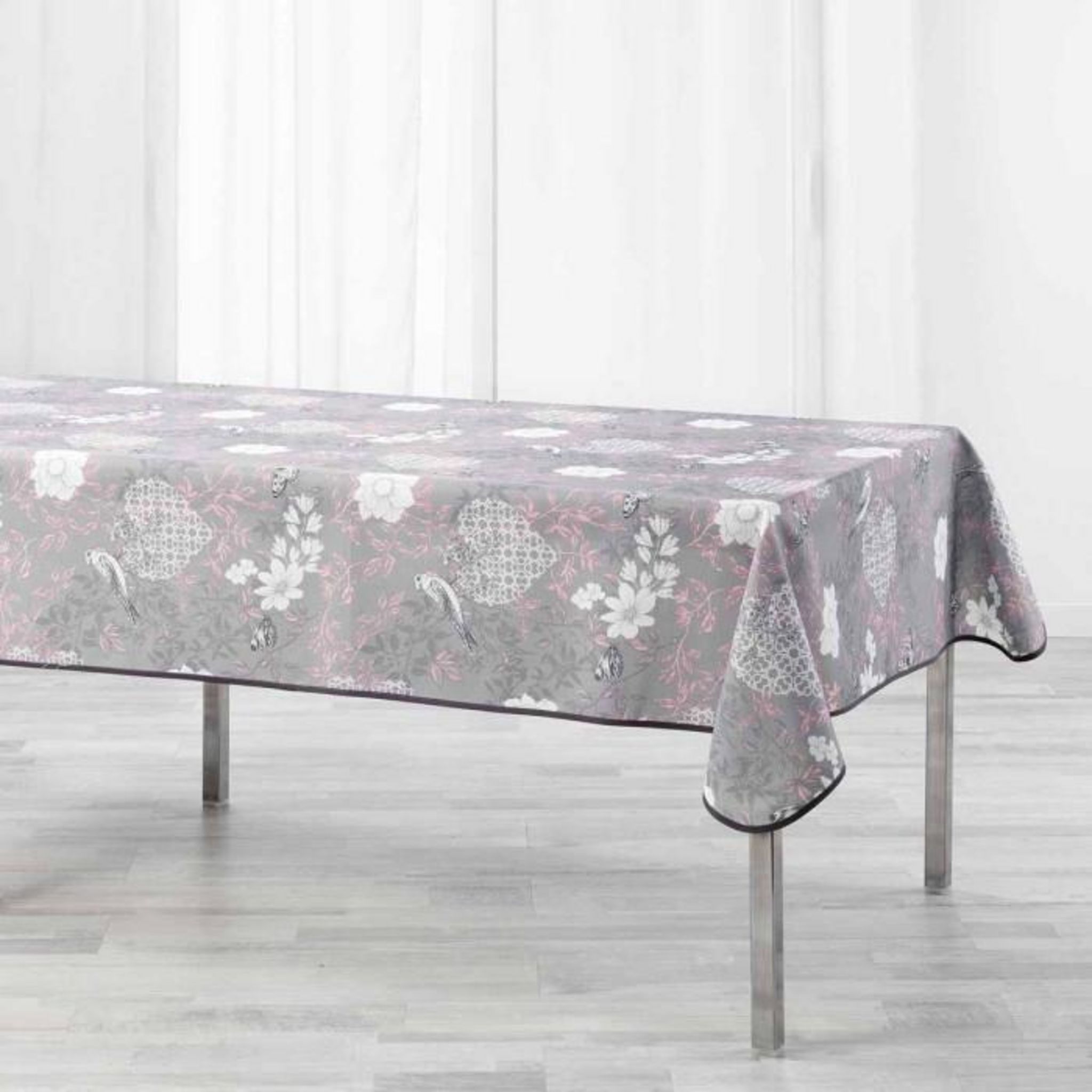 Informations Techniques : Dimensions : L. 240 x l. 150 cm Matière : 100% Polyester Spécificités : Doux & Agréable Nappe déco Forme Rectangulaire A Motifs Couleur : Gris & Rose
