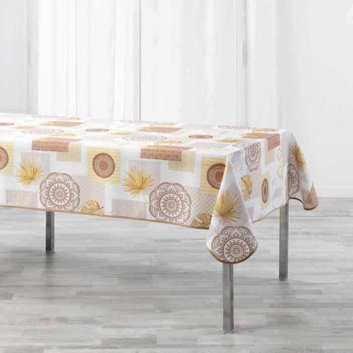 Informations Techniques : Dimensions : L. 240 x l. 150 cm Matière : Polyester Spécificités : Doux & Agréable Nappe déco Forme Rectangulaire A Motifs Couleur : Jaune & Blanc