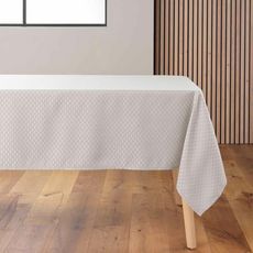 Informations Techniques : Dimensions : L. 240 x l. 140 cm Matière : 100% Polyester Spécificités : Infroissable & Antitache Nappe rectangulaire Pour 8 à 10 couverts Motif imprimé Tissu jacquard Facilité d'entretien Poids : 0,47 kg Couleur : Taupe