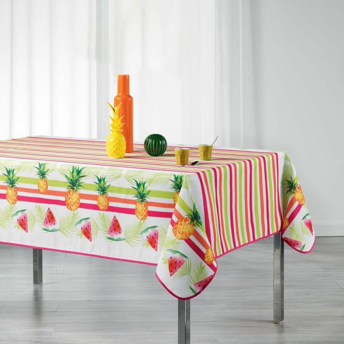 Informations Techniques : Dimensions : L. 240 x l. 150 cm Matière : Polyester Spécificités : Facile d'entretien Finitions : biais Lavable en machine Possibilité de repassage sur l'envers Imprimé : Pasthèque, Ananas & motifs graphiques Couleur : Multicolore