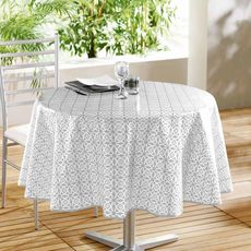 Nappe Ronde en Toile Cirée Abaca 160cm Gris & Blanc