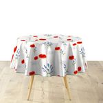 Informations Techniques : Dimensions : D. 160 cm Matières : PVC & Polyester Spécificités : Déco & Utile Nappe de table Imprimé floral Finition biais Pour 6 à 8 couverts Imperméable Nettoyage facile Forme ronde Poids : 0,72 kg Couleur : Blanc