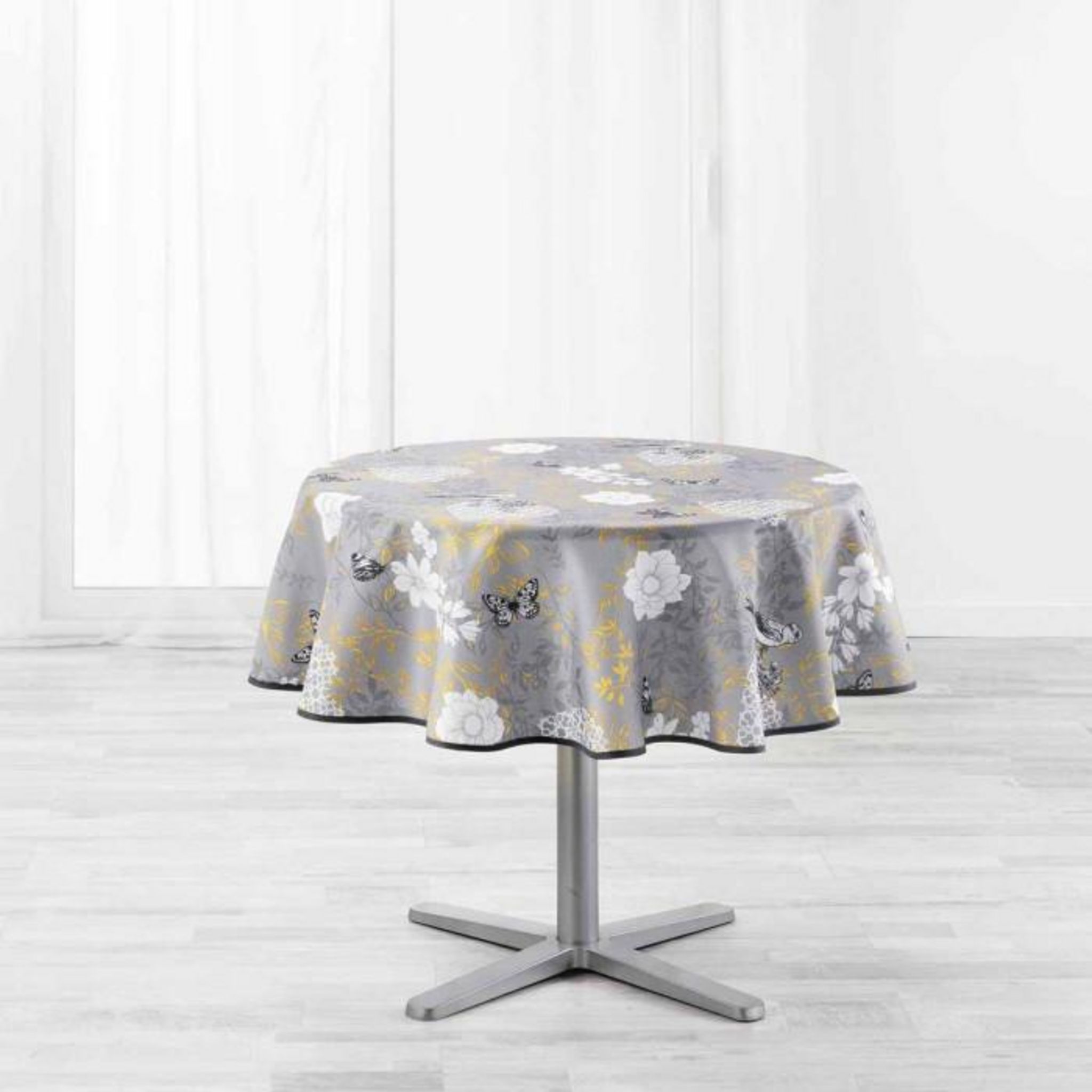 Informations Techniques : Dimensions : D. 180 cm Matière : 100% Polyester Spécificités : Doux & Agréable Nappe déco Forme Ronde A Motifs Couleur : Jaune