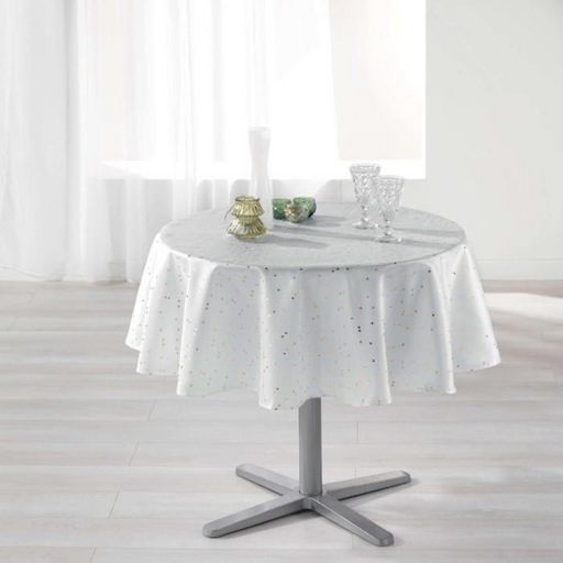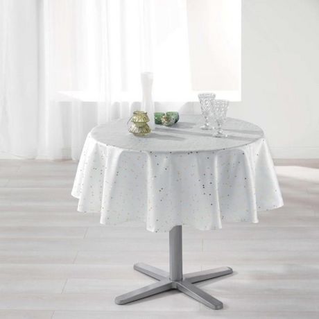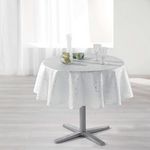 Informations Techniques : Dimensions : D. 180 cm Matière : Polyester Spécificités : Nappe Ronde Imprimée Pratique & Déco Entretien Facile Poids : 0,450 kg Couleur : Blanc