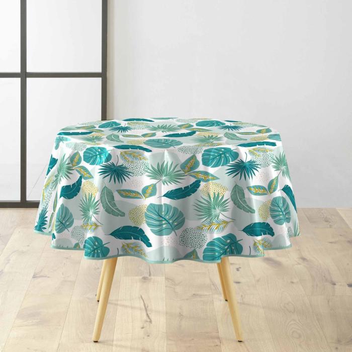 Nappe Toile Cirée Ronde Imprimé Plantania 160cm Bleu