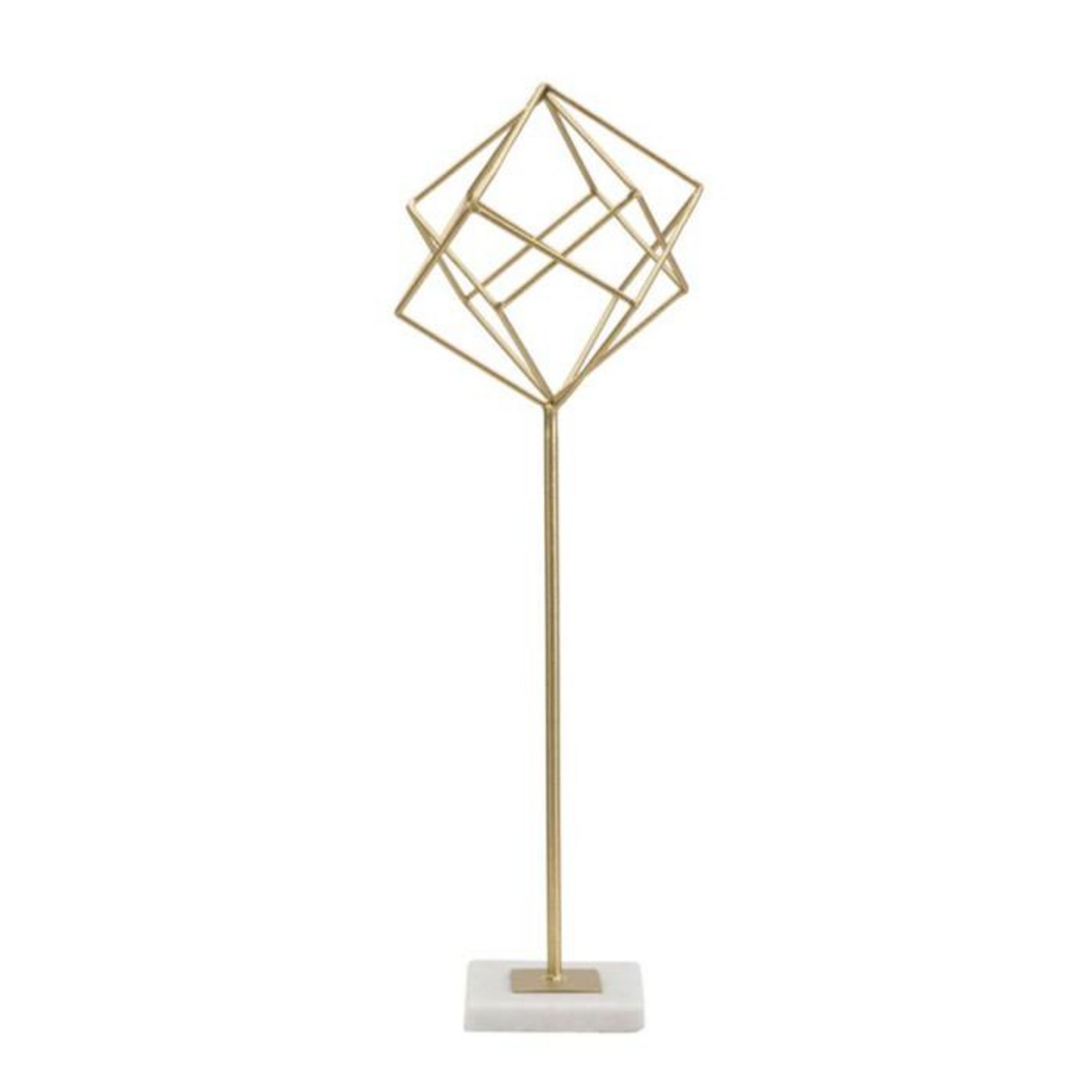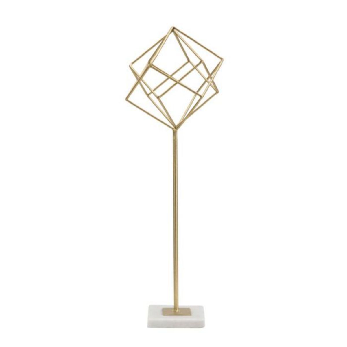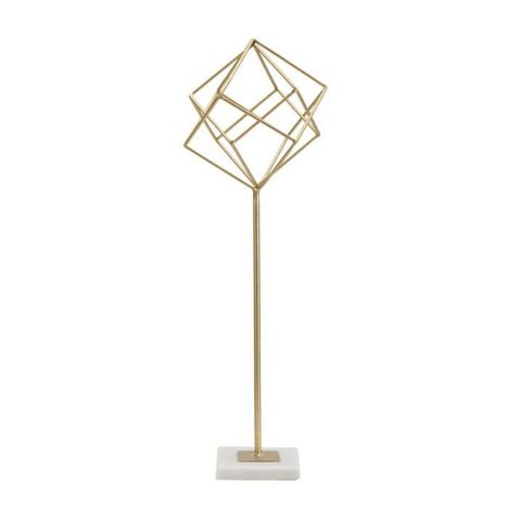 Informations Techniques : Dimensions : L. 16 x l. 18 x H. 52,5 cm Matières : Métal & Marbre Spécificités : Chic & Raffiné Objet déco à poser Design cube ajouré Sur socle en marbre Poids : 0,8 kg Couleur : Or
