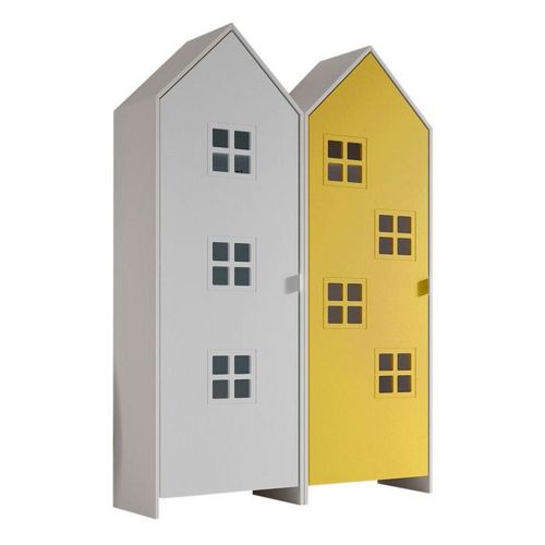 Informations Techniques : Dimensions : L. 115,2 x l. 37 x H. 171,5 cm Matière : MDF Spécificités : Original & Pratique Pack 2 armoires Design maison Style cabane de plage Finition laquée À monter soi-même Certification : FSC Nombre de colis : 2 Poids : 65,2 kg Couleur : Jaune & Blanc