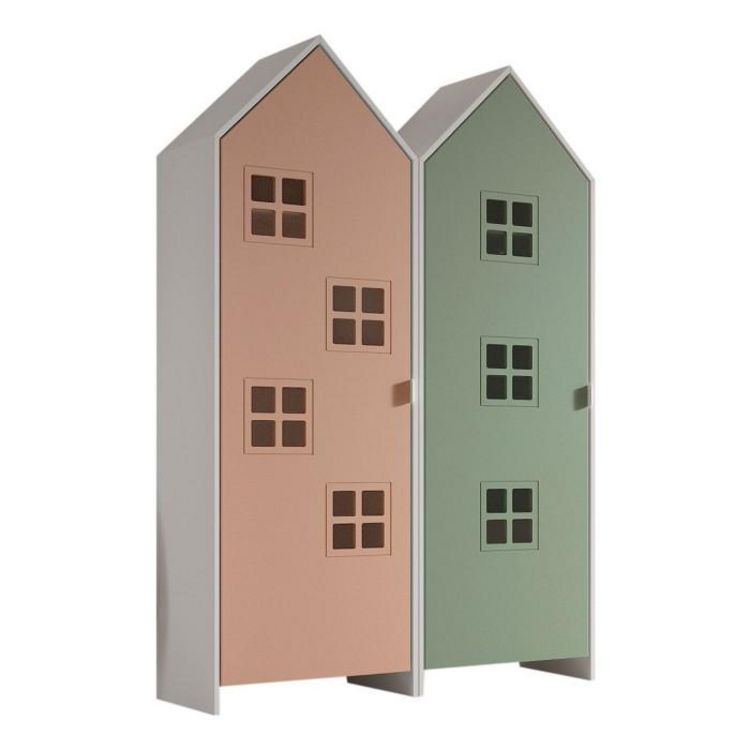 Informations Techniques : Dimensions : L. 115,2 x l. 37 x H. 171,5 cm Matière : MDF Spécificités : Original & Pratique Pack 2 armoires Design maison Style cabane de plage Finition laquée À monter soi-même Certification : FSC Nombre de colis : 2 Poids : 65,2 kg Couleur : Rose & Vert