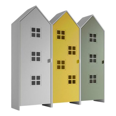Informations Techniques : Dimensions : L. 172,8 x l. 37 x H. 171,5 cm Matière : MDF Spécificités : Original & Pratique Pack 3 armoires Design maison Style cabane de plage Finition laquée À monter soi-même Certification : FSC Nombre de colis : 3 Poids : 97,8 kg Couleur : Blanc, Jaune & Vert