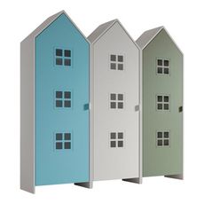 Informations Techniques : Dimensions : L. 172,8 x l. 37 x H. 171,5 cm Matière : MDF Spécificités : Original & Pratique Pack 3 armoires Design maison Style cabane de plage Finition laquée À monter soi-même Certification : FSC Nombre de colis : 3 Poids : 97,8 kg Couleur : Bleu, Blanc & Vert