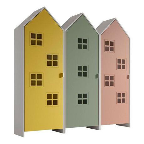 Informations Techniques : Dimensions : L. 172,8 x l. 37 x H. 171,5 cm Matière : MDF Spécificités : Original & Pratique Pack 3 armoires Design maison Style cabane de plage Finition laquée À monter soi-même Certification : FSC Nombre de colis : 3 Poids : 97,8 kg Couleur : Jaune, Vert & Rose