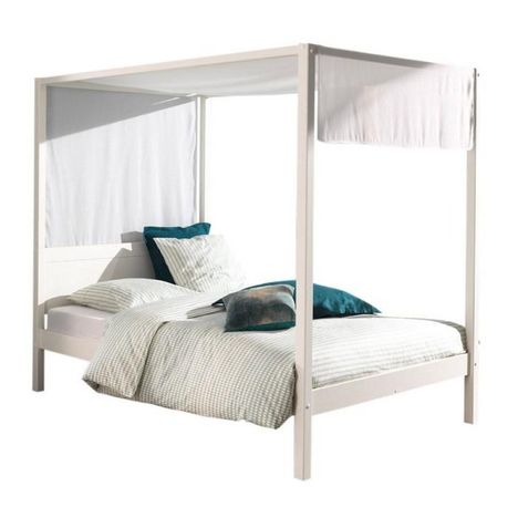 Lit à Baldaquin Bois Massif Pino 140x200cm Blanc