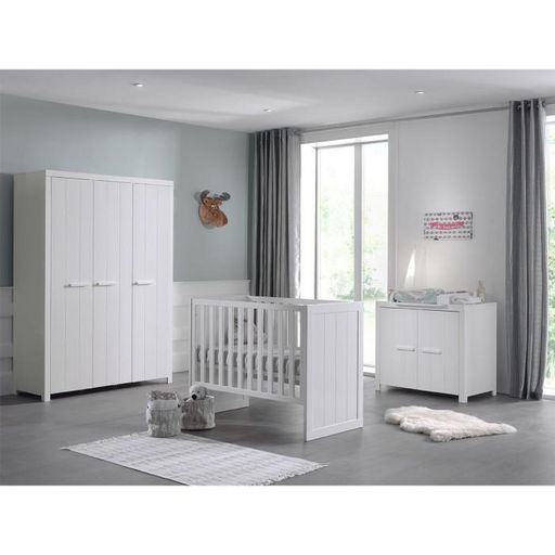Pack - Lit Bébé 60x120cm, Commode & Armoire Erik Blanc