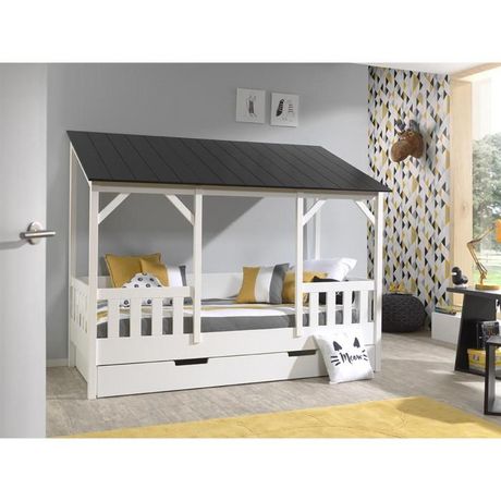 Pack - Lit Cabane Enfant & Tiroir Housebed III 90x200cm Blanc & Noir