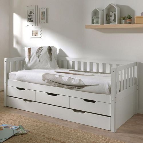 Tiroir de Lit en Bois Massif Fritz 90x200cm Blanc