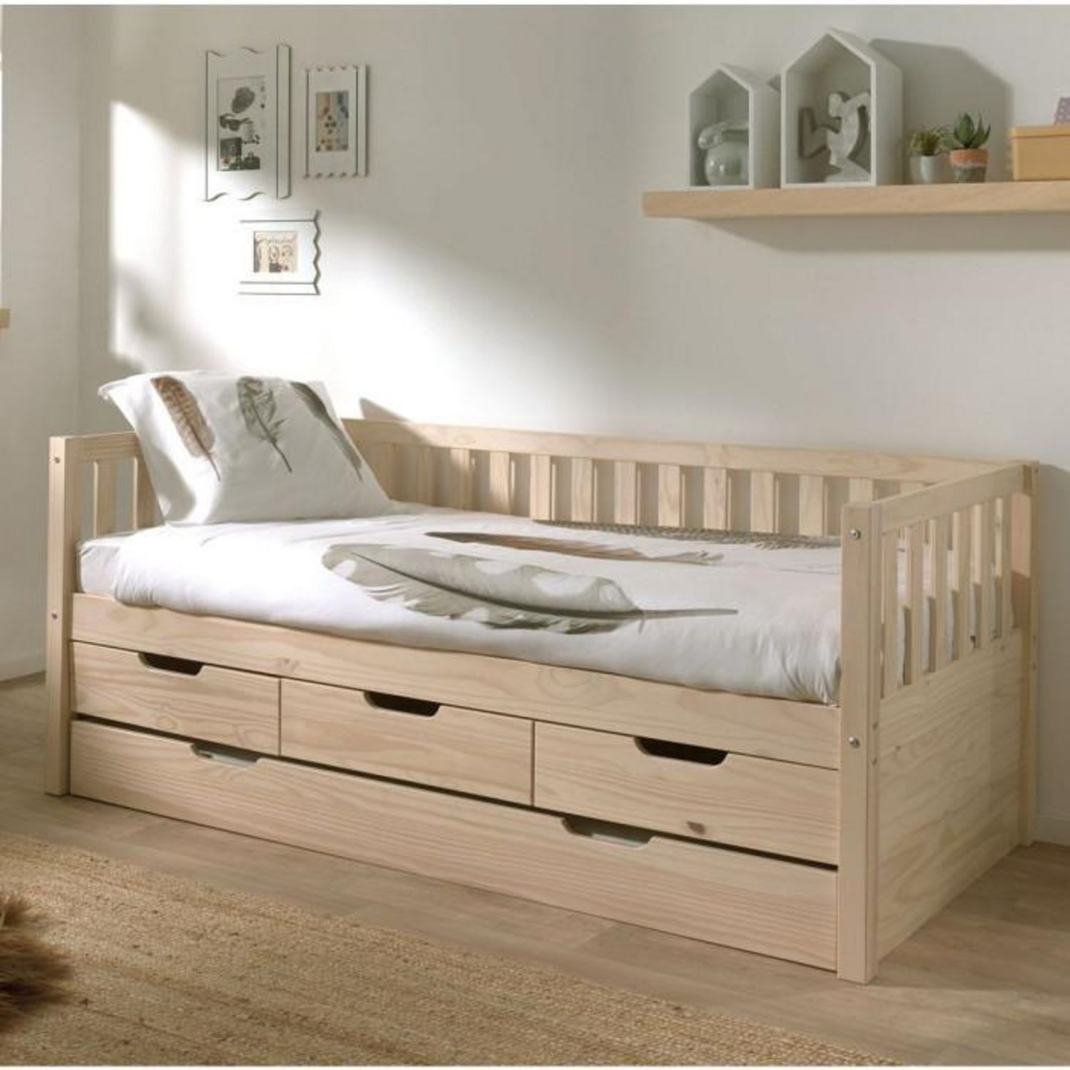 Pack - Lit Capitaine Enfant & Tiroir de Lit Fritz 90x200cm Naturel