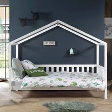 Lit Enfant Cabane & Barrière Dallas II 90x200cm Blanc