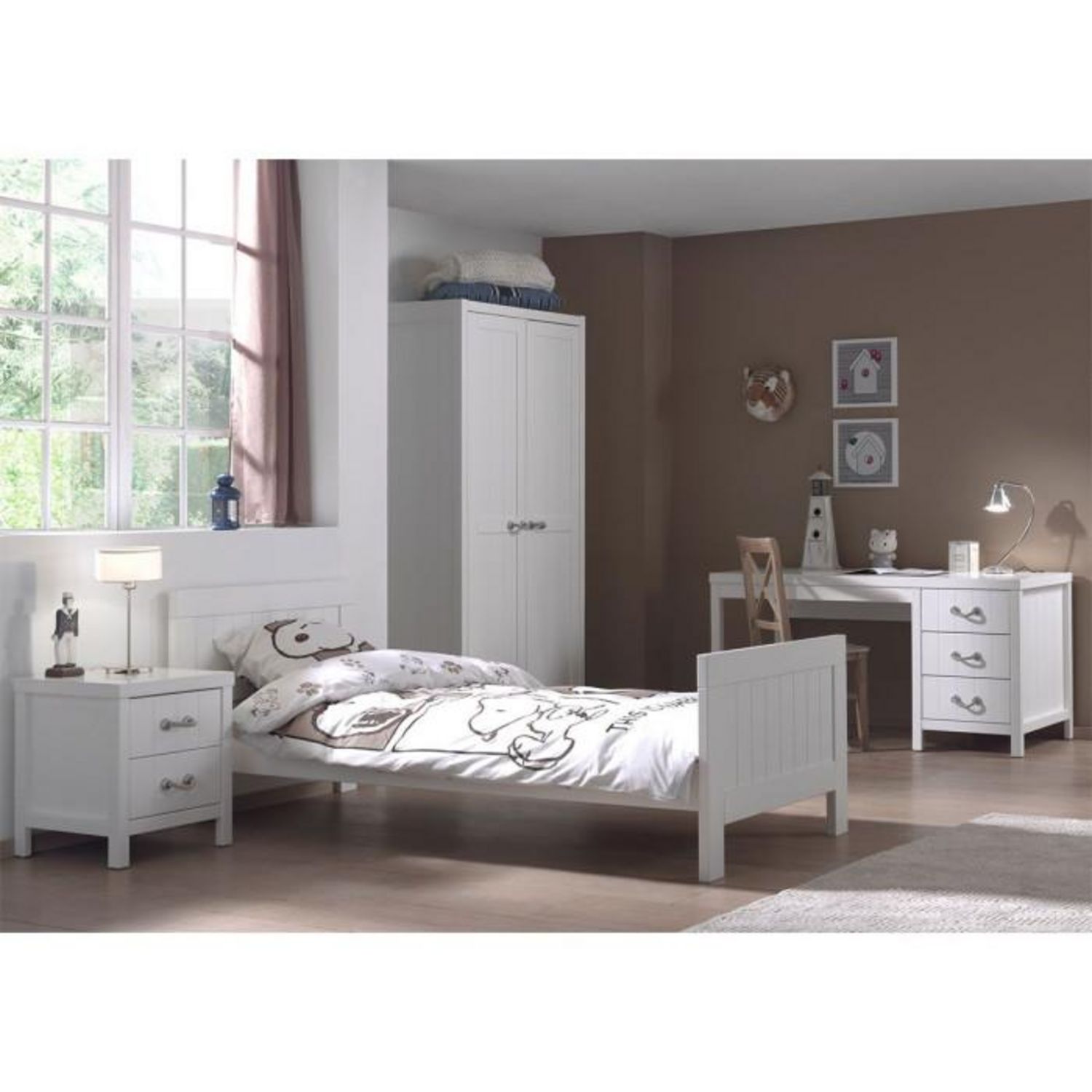 Pack - Lit Enfant, Chevet, Armoire & Bureau Lewis I Blanc