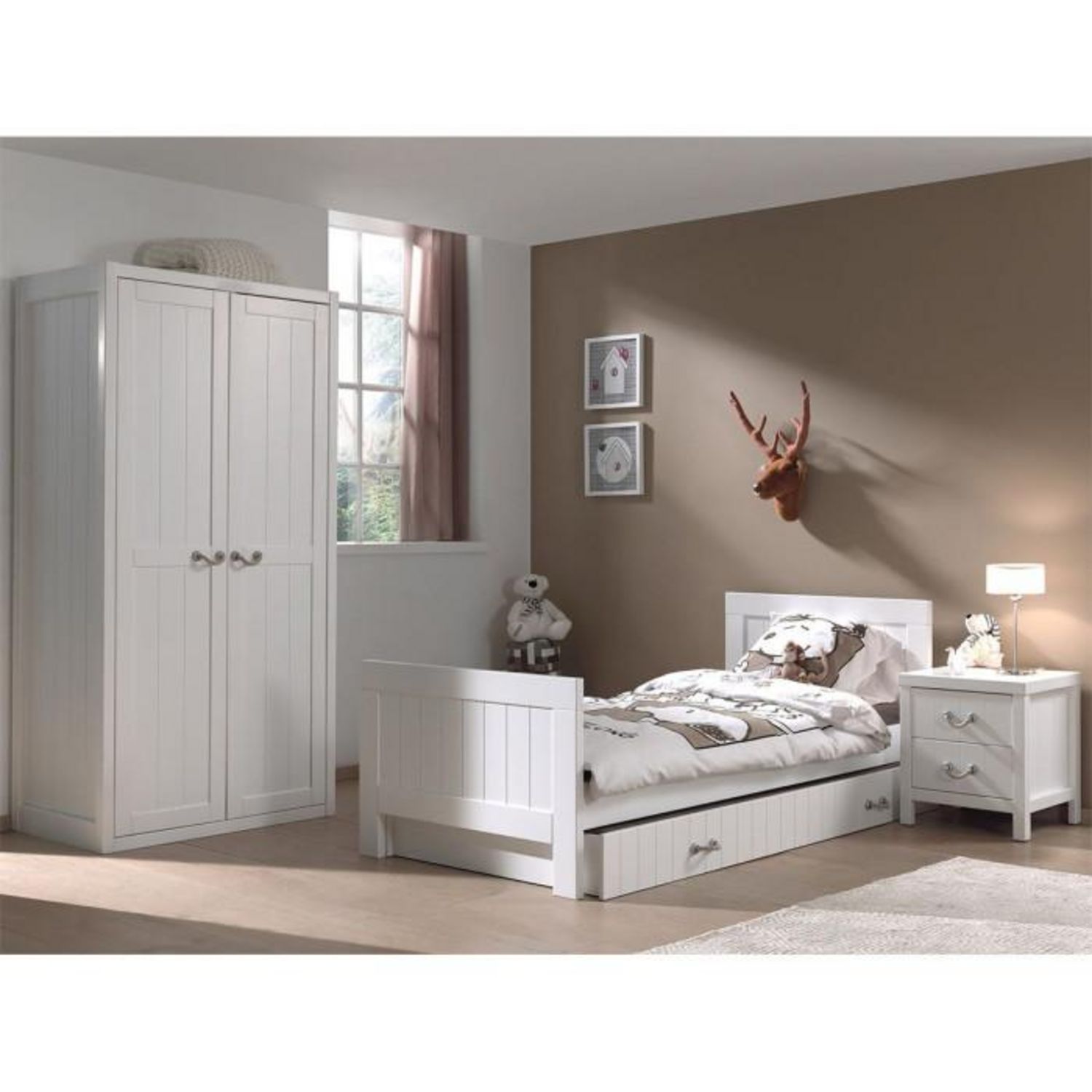 Pack - Lit Enfant, Chevet, Armoire & Tiroir Lewis Blanc