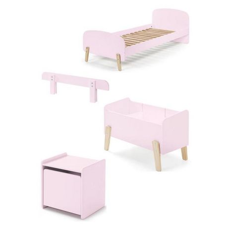KIDDY Rose Lit simple + Chevet + Barrière de lit + Coffre à jouets