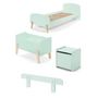 Pack - Lit Enfant, Chevet, Barrière & Coffre Kiddy 90x200cm Vert Menthe
