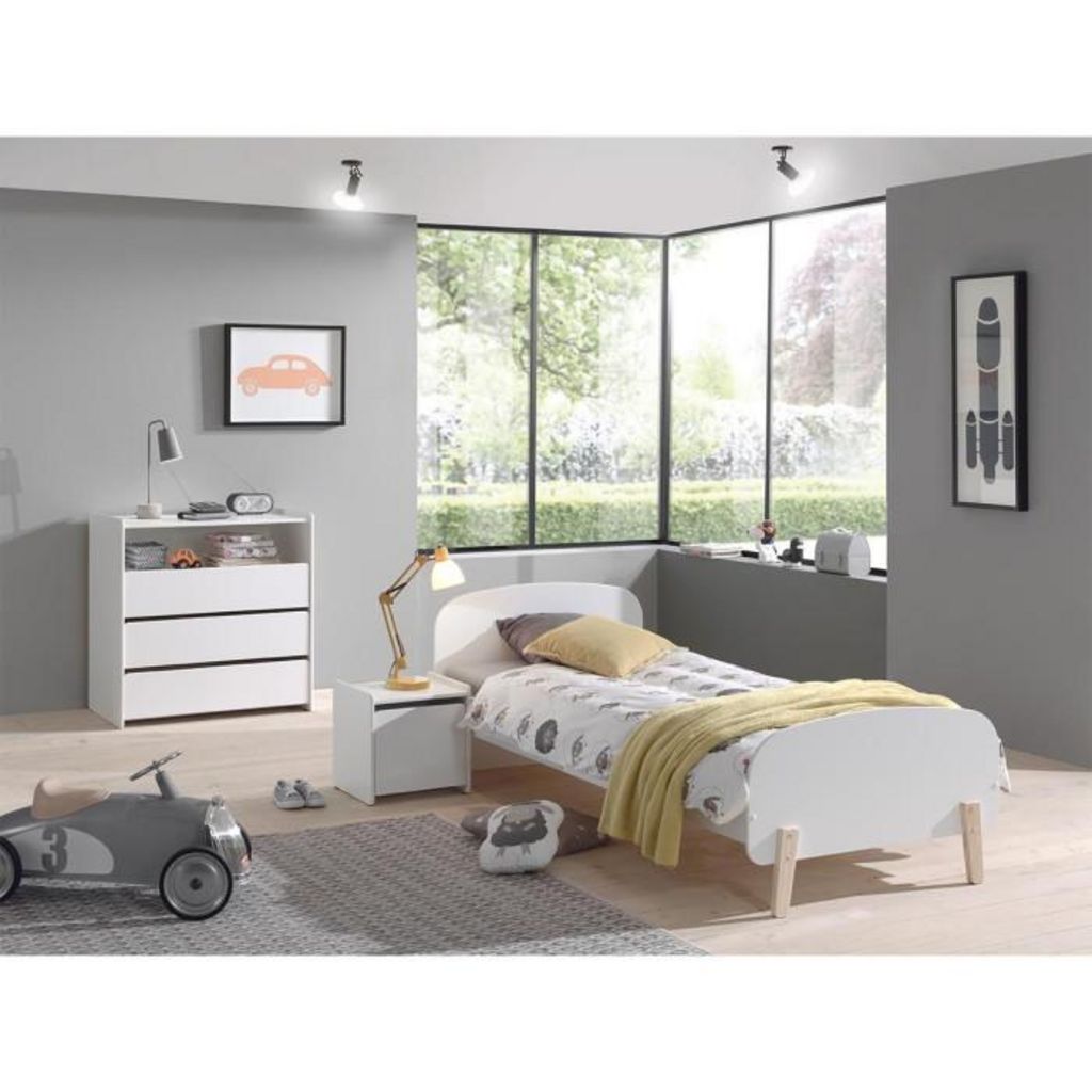 Pack - Lit Enfant, Chevet & Commode Kiddy Blanc