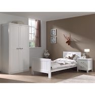 Pack - Lit Enfant, Sommier, Chevet & Armoire Lewis 90x200cm Blanc
