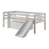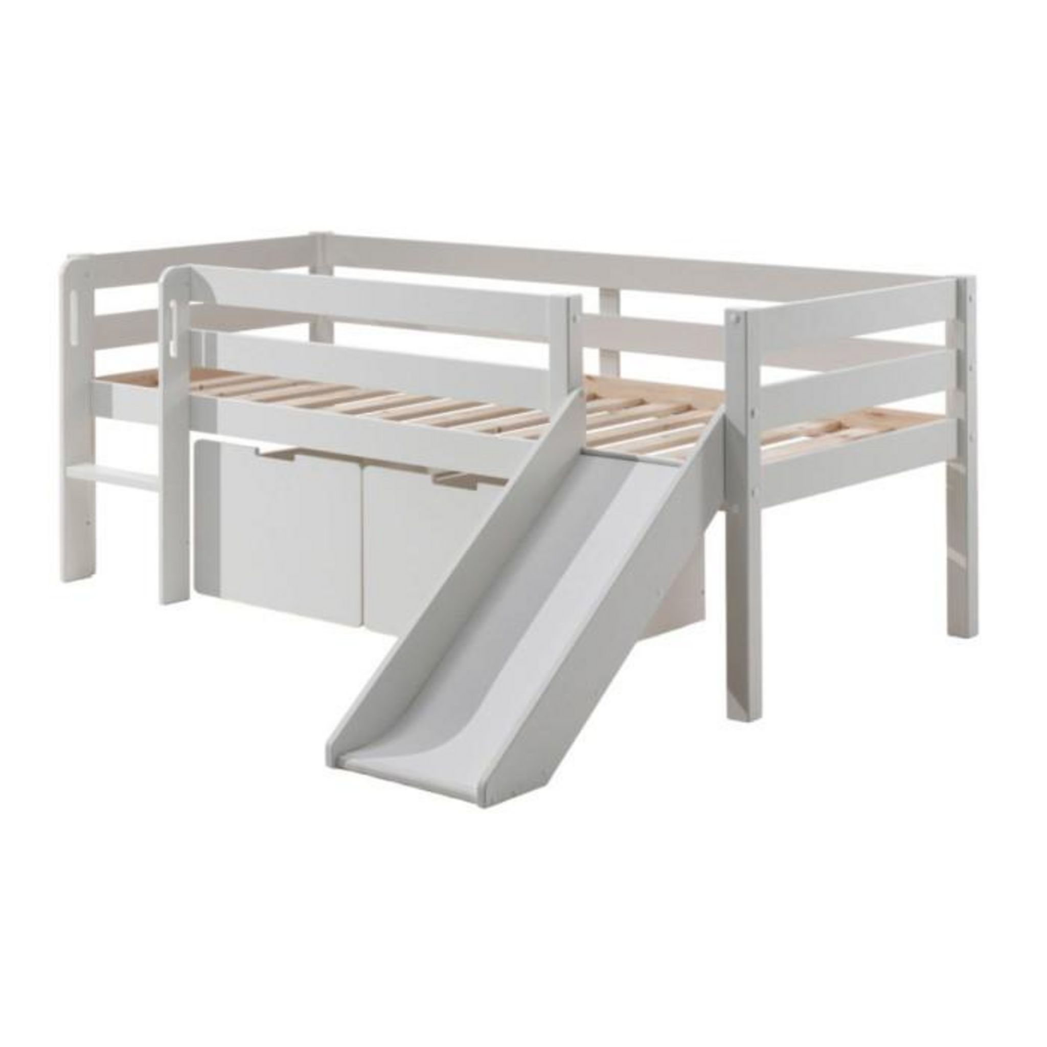 lit mi-hauteur blanc + toboggan et 2 tiroirs de rangement