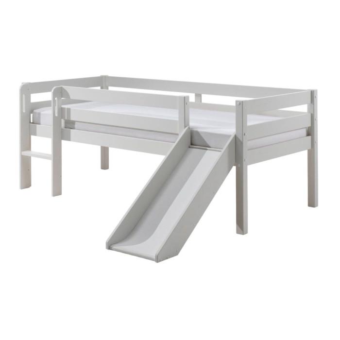 Lit Enfant Surélevé & Toboggan Pino 90x200cm Blanc