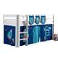 PINO Lit sureleve 90x200cm avec sommier Blanc + Rideau de lit Astro + 3 pochettes