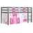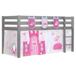 Lit Enfant Surélevé Pino 90x200cm Gris + Rideau de lit et 3 pochettes Princess