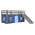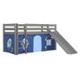 Lit Enfant Surélevé Avec Toboggan Pino 90x200cm Gris + Rideau de lit Space