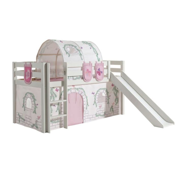 Faites le bonheur de votre enfant grâce à ce lit mezzanine 90x200 composé d'une échelle, d'un toboggan et d'un ensemble de housses pour transformer le lit en lit cabane....