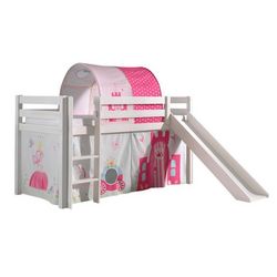 PINO Lit mezzanine avec toboggan + Princess rideau et tunnel de lit + 3 pochettes