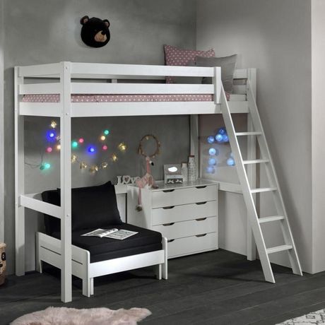 Pack - Lit Mezzanine, Commode & Fauteuil-Lit Pino II Blanc