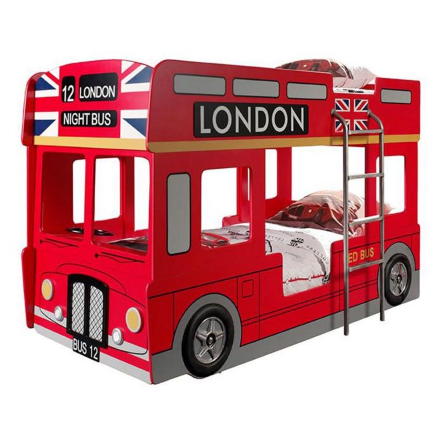 Lit Superposé Enfant Bus Londres 90x200cm Rouge