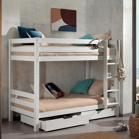 Pack - Lit Superposé Enfant & 2 Tiroirs Pino Blanc