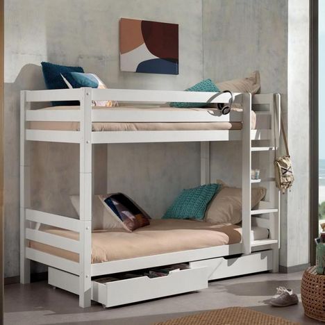 Lit Superposé Enfant Bois Pino 90x200cm Blanc