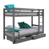 Lit Superpose Enfant Bois Pino 90x200cm Gris Hauteur 160 + 2 tiroirs de lit