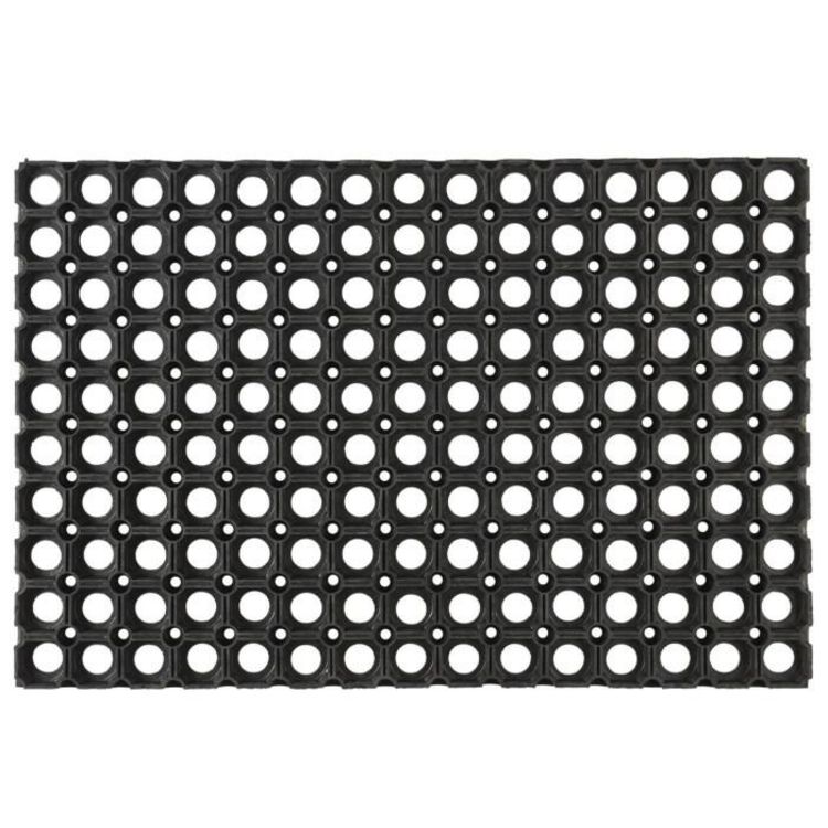 Informations Techniques : Dimensions : L. 60 x l. 40 x H. 1,6 cm Matière : 100% Caoutchouc Spécificités : Pratique & Déperlant Paillasson caillebotis Design ajouré Forme rectangulaire Nettoyage avec un chiffon humide Poids : 0,9 kg Couleur : Noir